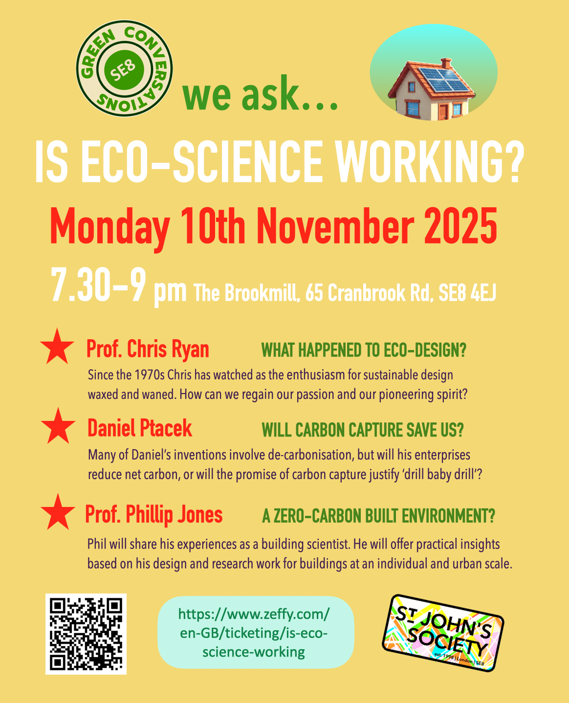 COMING SOON Another Green Conversations evening - Monday 10th November at the Brookmill, London SE8 BOOK a place here
