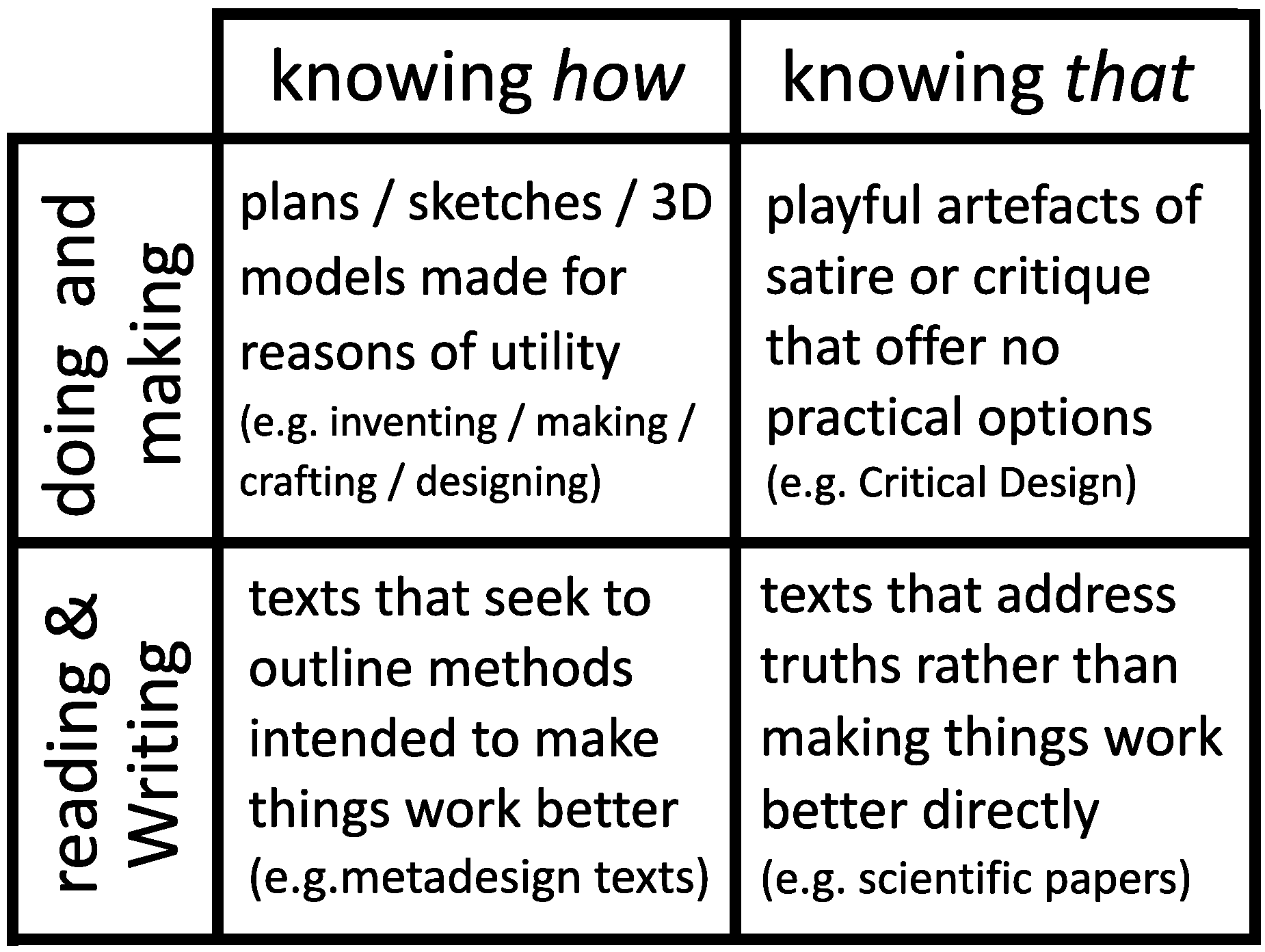 • Designers owe more to the Crafts Guilds idea of 'knowing' as an outcome-oriented process, rather than with the monastic, truth-based idea of knowing, from which modern 'research' methodology evolved.