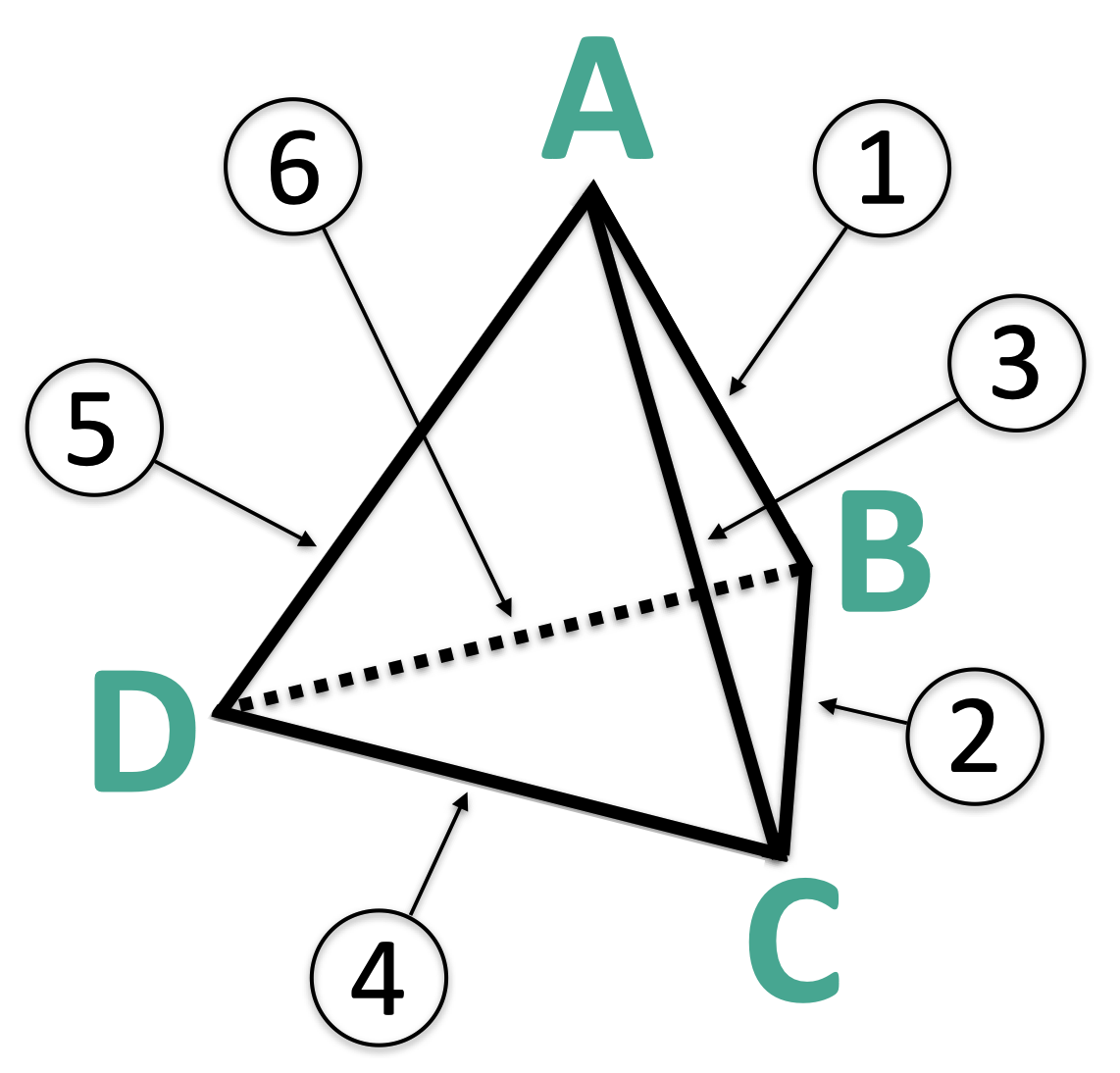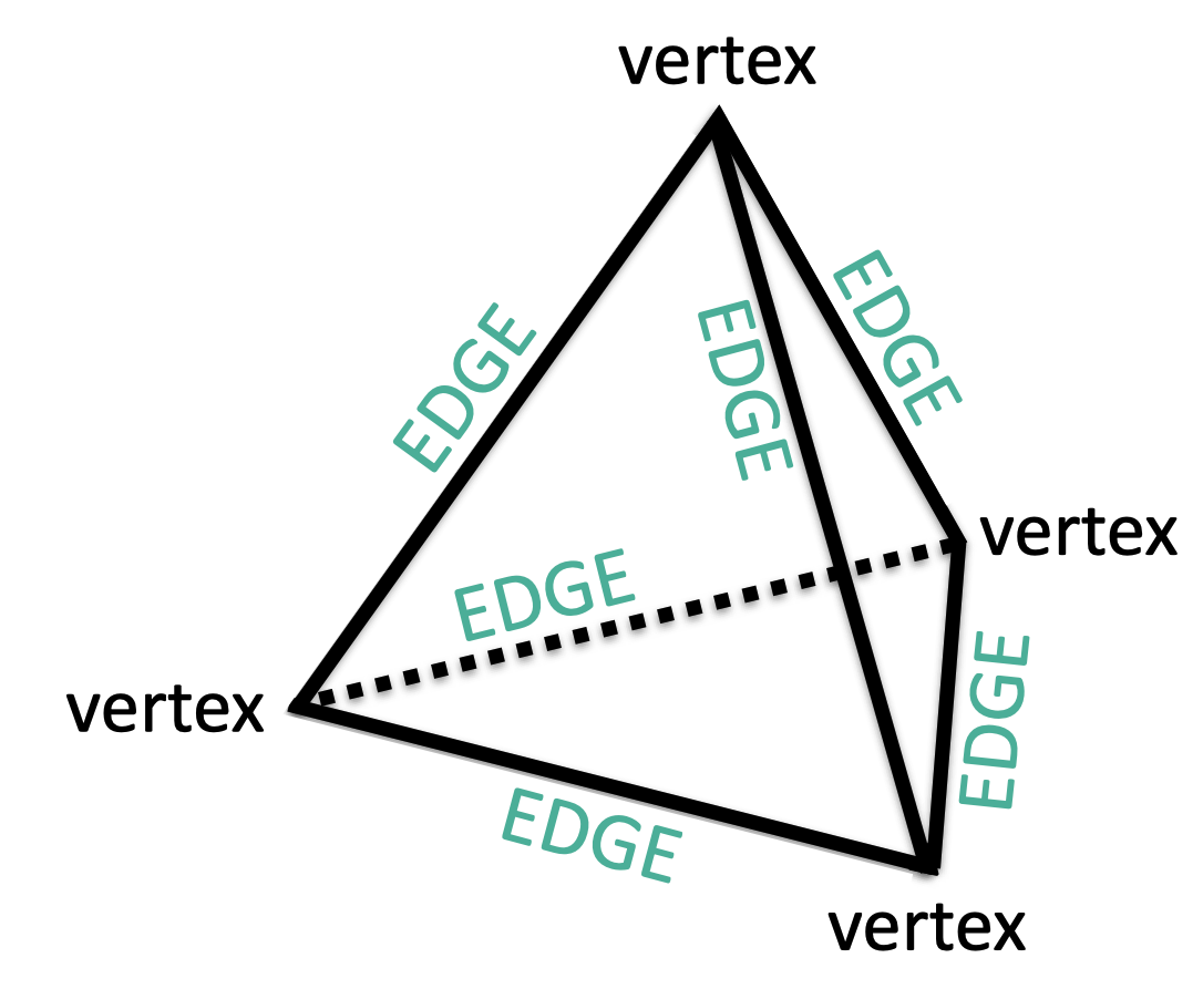 A tetrahedron has 4 vertices and 6 edges