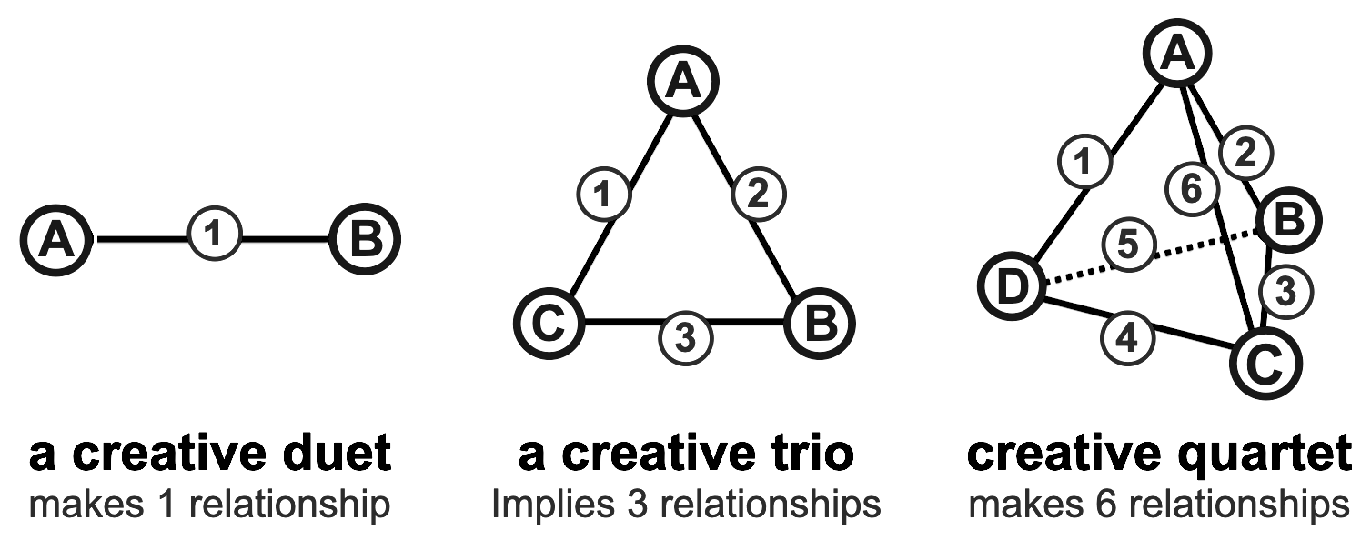 Fig. 6 - a quartet has 6 x more potential synergies than a duet