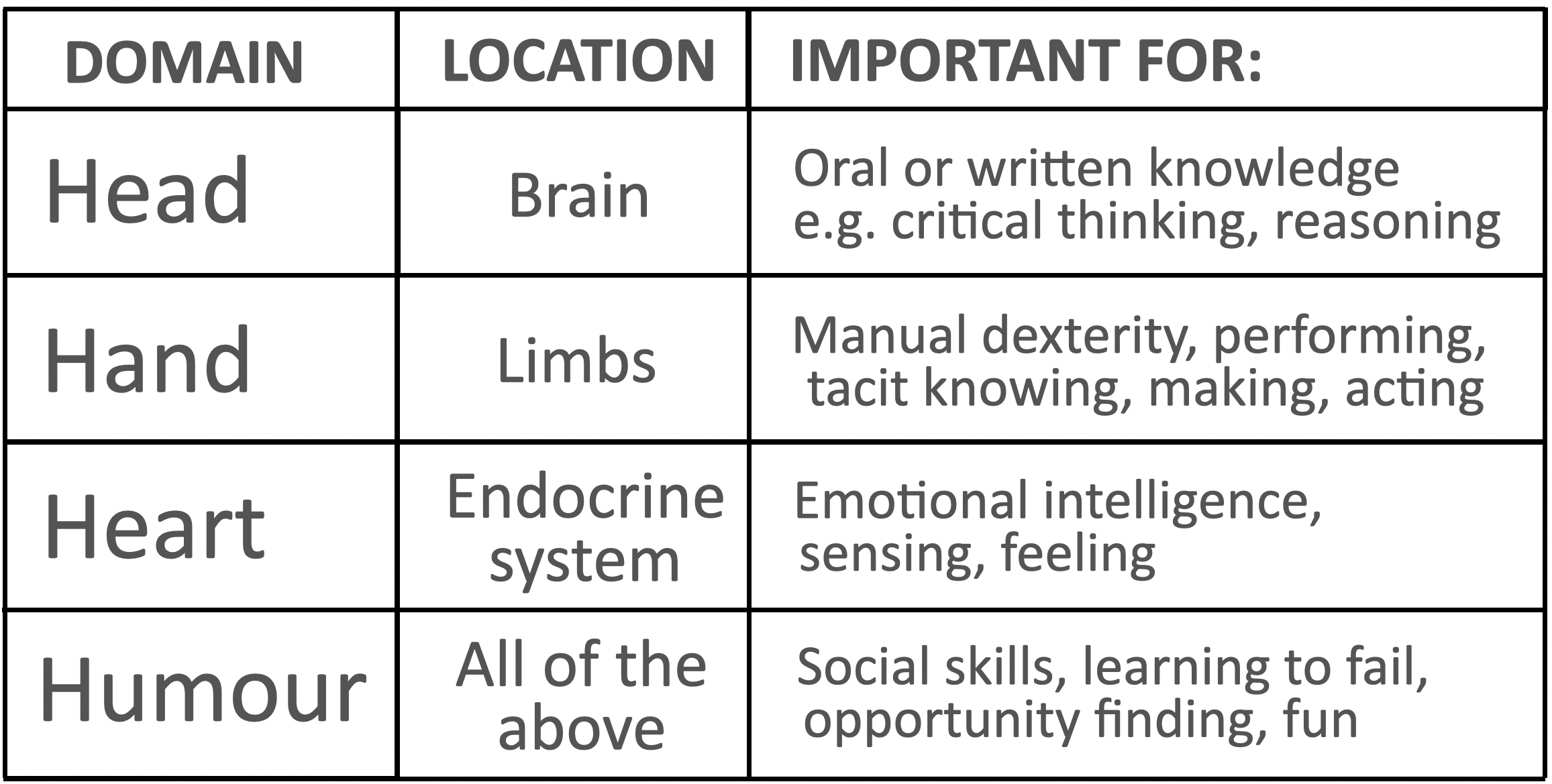 (See 'Head/Hand/Heart/Humour). The following quadrant is offered as a preliminary attempt to dissolve the often value-laden polarisation of 'practice' and ‘theory’.