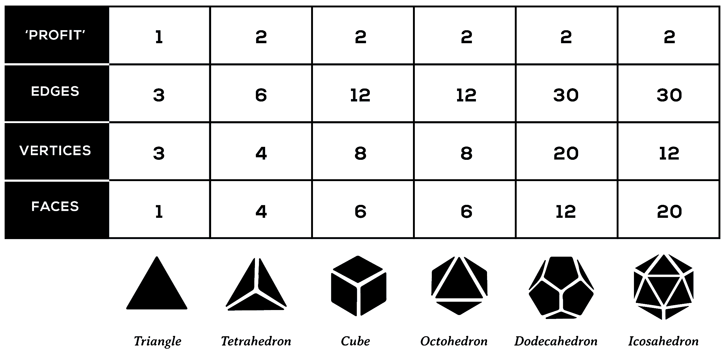 The idea that a quartet is six times more productive or synergistic than a duet is easily deduced visually from a tetrahedron. Euler’s law illustrates the general truth that there are always more relations (edges) than things (nodes).