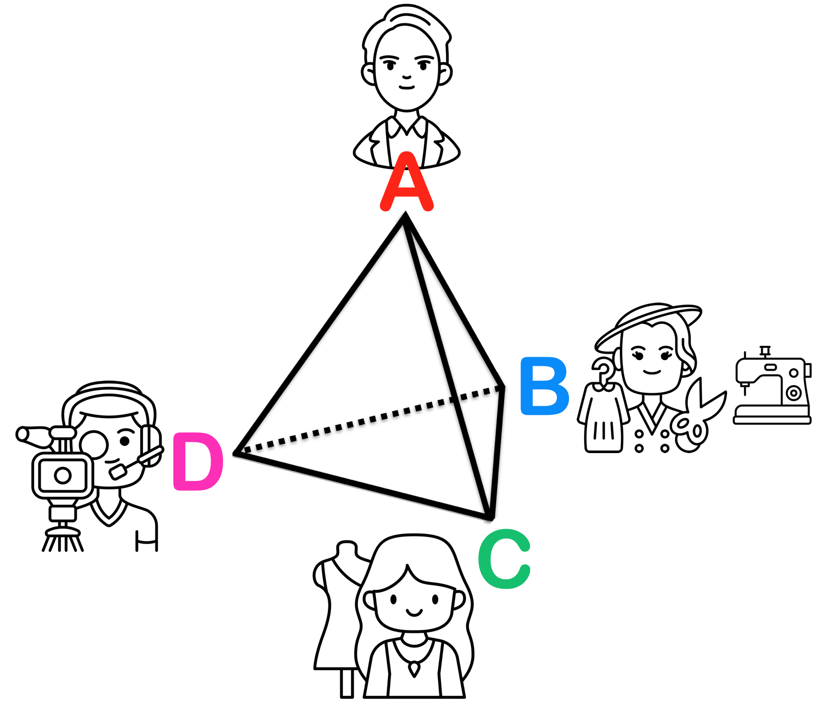 We normally arrange the room as a flattened tetrahedron